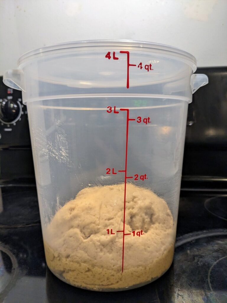 - Transfer the dough to an air-tight container with enough room for doubling.